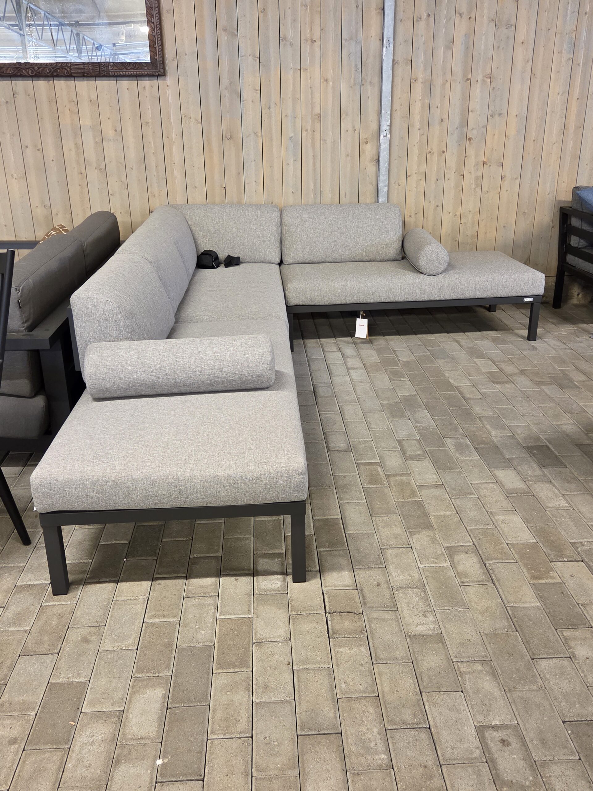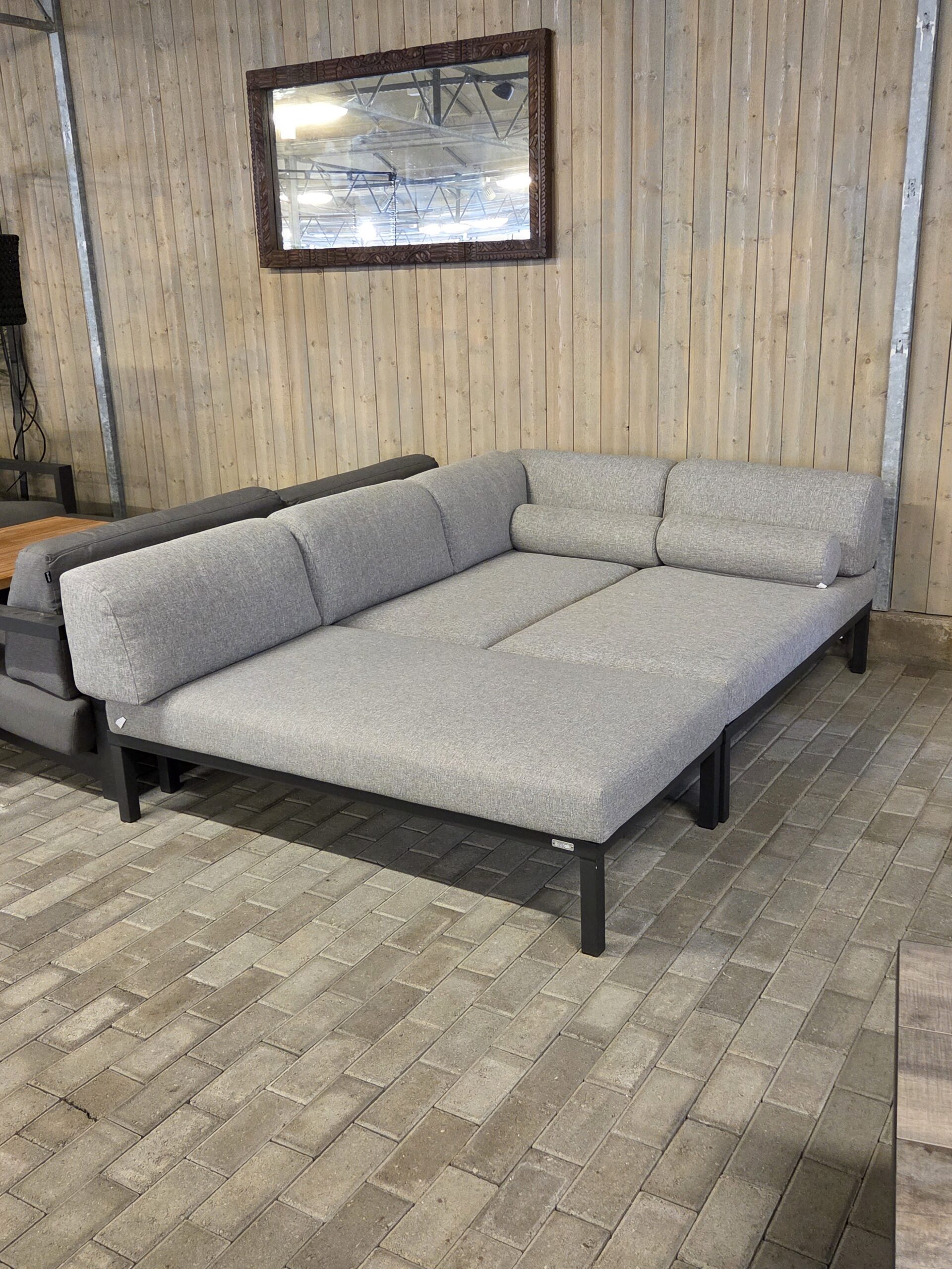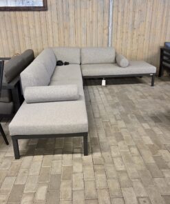 Gonesse Hjørnesofa kan forvandles inn til en dagseng, som gir den flere bruksområder. Gonesse har svart ramme og lysegrå puter.