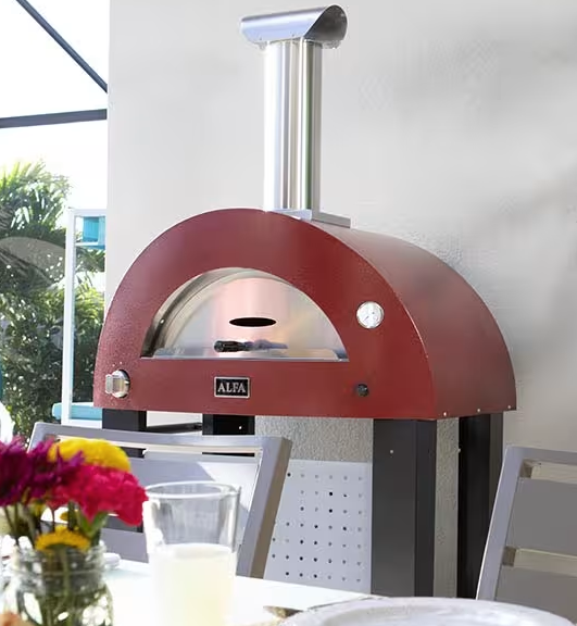 Alfa Forni – pizzaovn / bakerovn har ildfast gulv, og kuppel i rustfritt stål. Den når raskt driftstemperatur, og døren har et lite vindu som lar deg inspisere matlagingen mens den pågår.